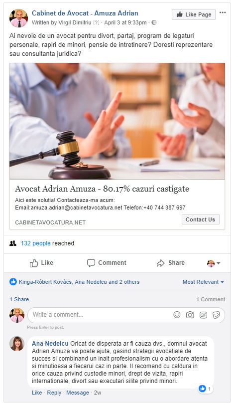 Din perspectiva avocatului Adrian Amuza, orice caz nou reprezintă o provocare, fiecare nouă reprezentare în instanță fiind o sarcină dificilă, ce trebuie tratată cu respect și seriozitate. Este dificil să găsești un avocat specializat în cazuri de divorț și dreptul familiei, pregătit să te reprezinte în instanță la fel de bine cum o poate face Adrian Amuza. Pregătit să-ți fie alături și să îți ofere cele mai bune servicii ale sale, Avocat Amuza îți stă la dispoziție oricând ai nevoie!